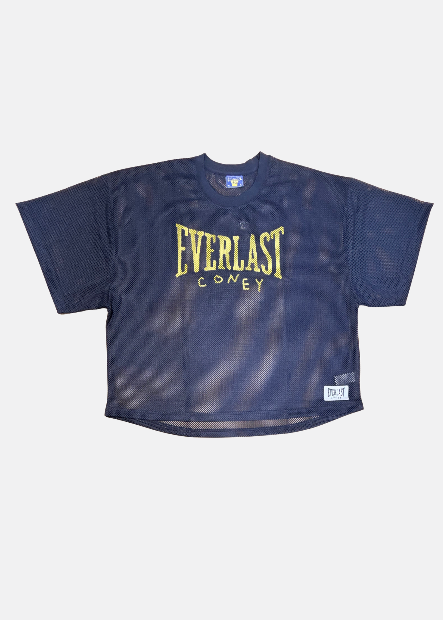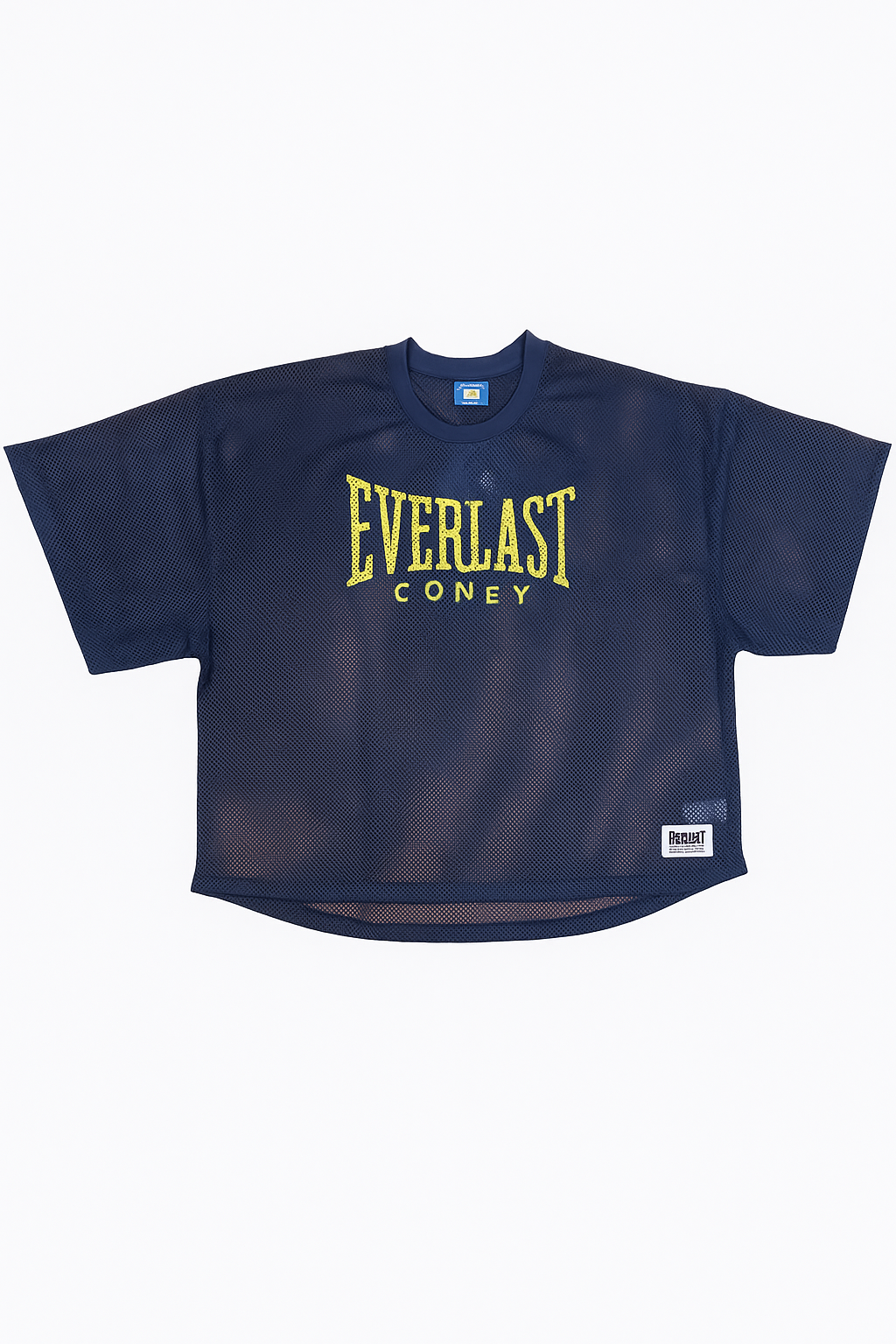 Channel your sporty style with our men's Coney Island Picnic x Everlast Athletic Mesh Jersey. This white short sleeve top takes inspiration from football jerseys, featuring a baggy oversized fit, a crew neckline, and dropped shoulders for a relaxed look. Complete with custom Coney x Everlast graphics on the front and back, it's the perfect blend of athletic and streetwear.